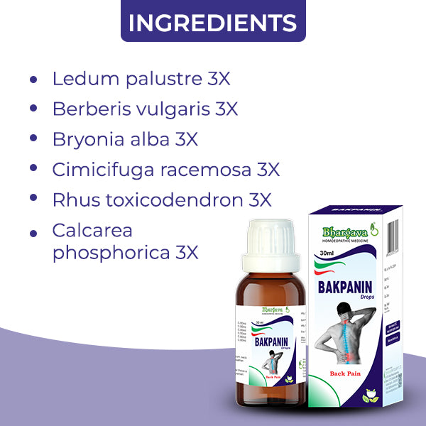 Doctor Bhargava Bakpanin Minims is a homeopathic medicine that is taken to overcome a backache. It is suitable for both males & females. It helps to get instant relief from severe back pain.